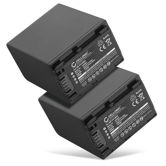 2x Battery for Sony HDR CX625, CX250, CX260, CX270, CX410, CX430, CX230, CX220, CX210 NP-FV70A NP-FV50A NP-FV30 NP-FV90 NP-FV100A (3090mAh, 7.2V) from CELLONIC